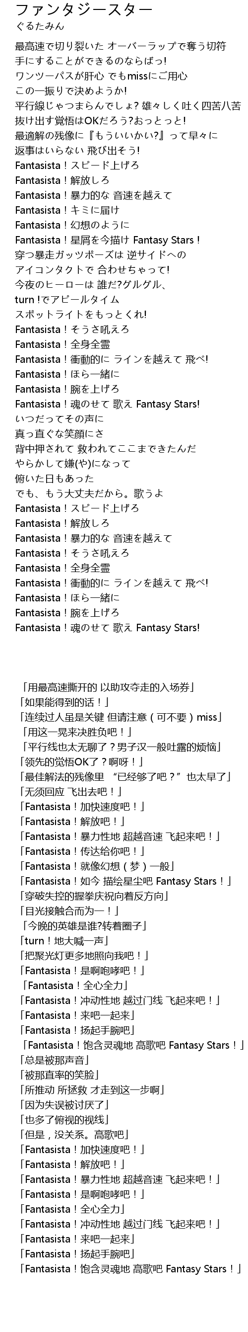 | [02:32.60] | Fantasista! hun ge Fantasy Stars! |