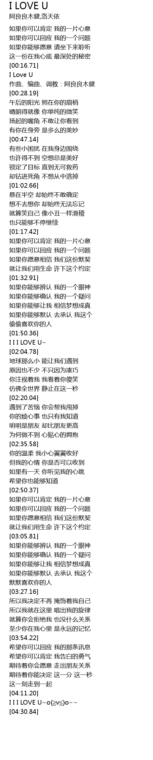 | [04:12.09] | I I I LOVE U~o(≧v≦)o~~ |