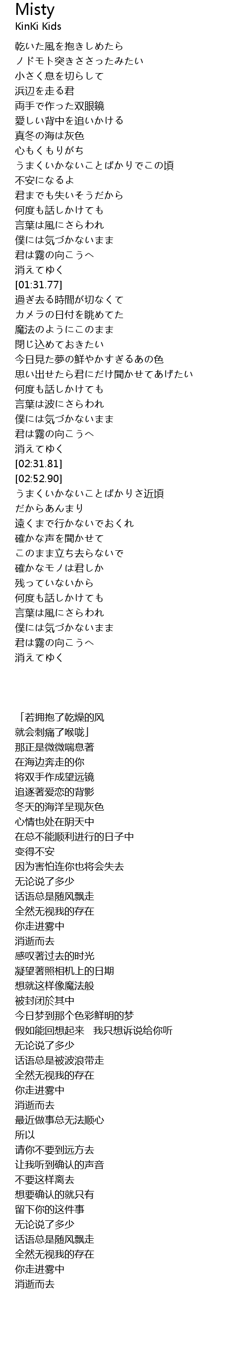 | [00:24.34] | 乾いた風を抱きしめたら |