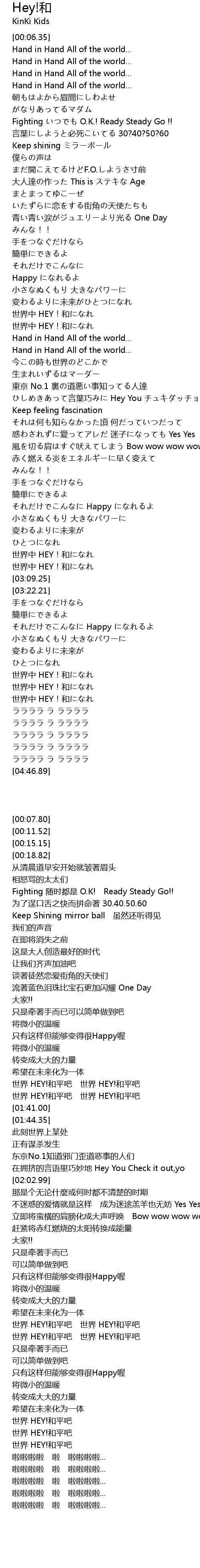 | [04:06.52] | 世界 HEY!和平吧 |
