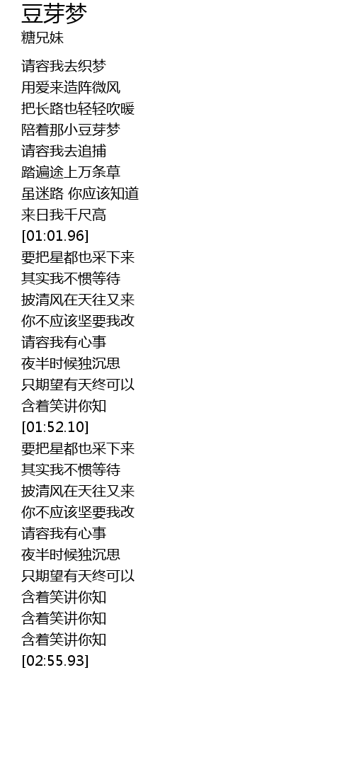 | [00:33.51] | 陪着那小豆芽梦 |