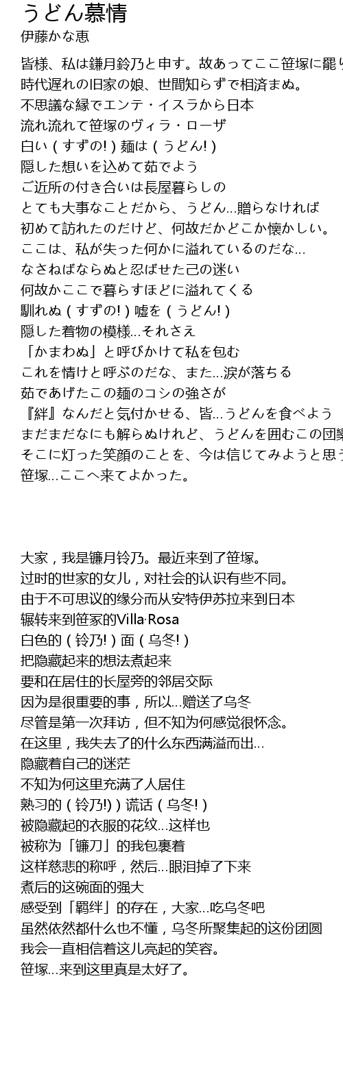 | [02:59.75] | 感受到「羁绊」的存在,大家…吃乌冬吧 |