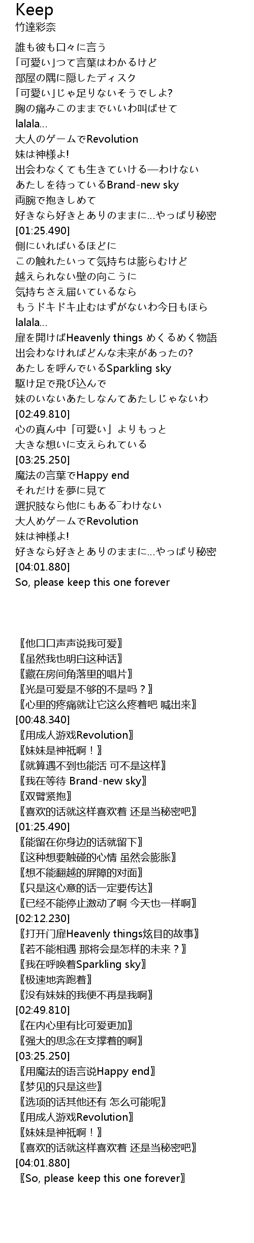 | [04:04.440] | 〖So, please keep this one forever〗 |
