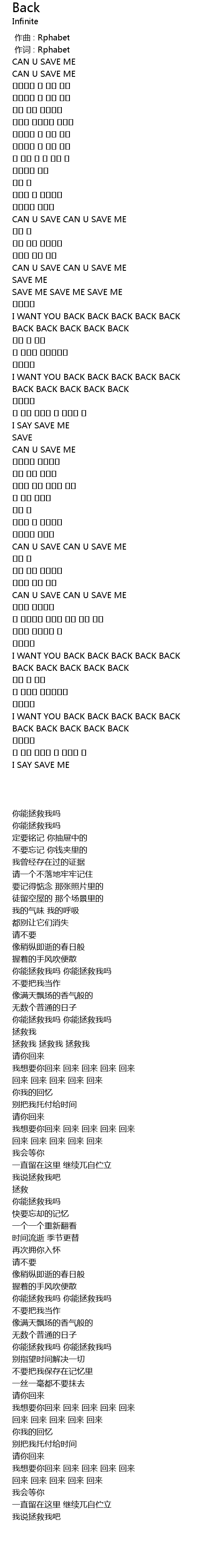 | [03:34.350] | 我想要你回来 回来 回来 回来 回来 |