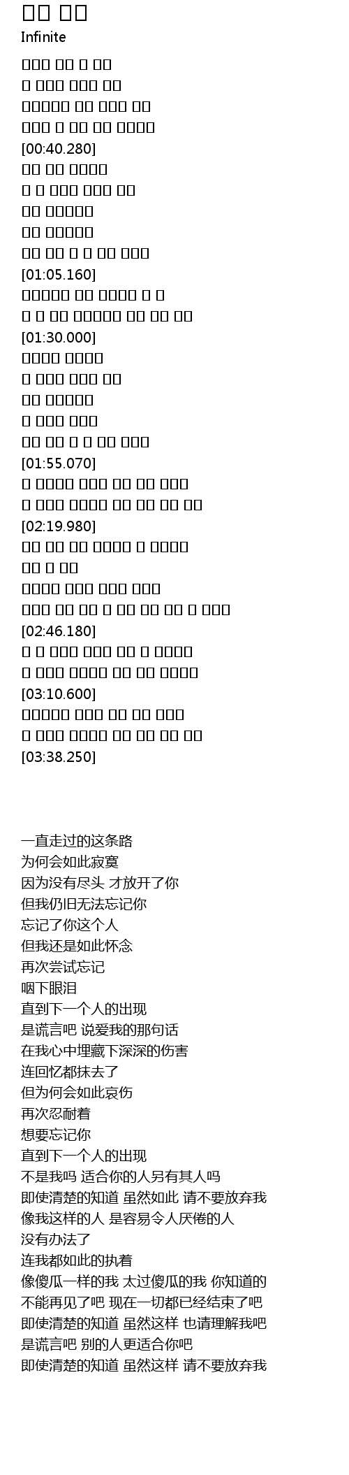 | [00:34.100] | 아직도 난 너를 잊지 못하는데 |