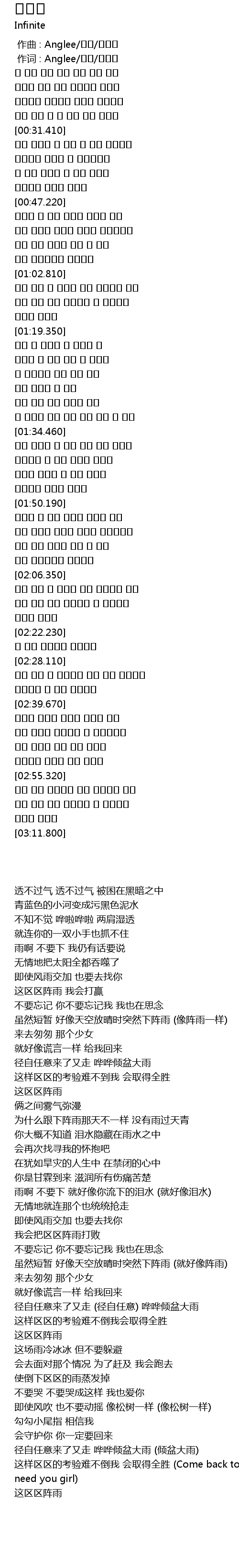 | [00:31.650] | 雨啊 不要下 我仍有话要说 |