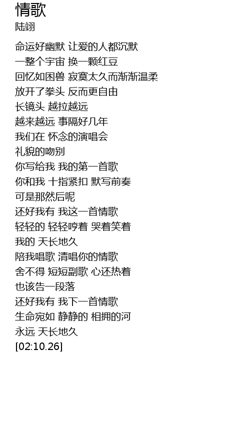 | [01:26.51] | 陪我唱歌 清唱你的情歌 |