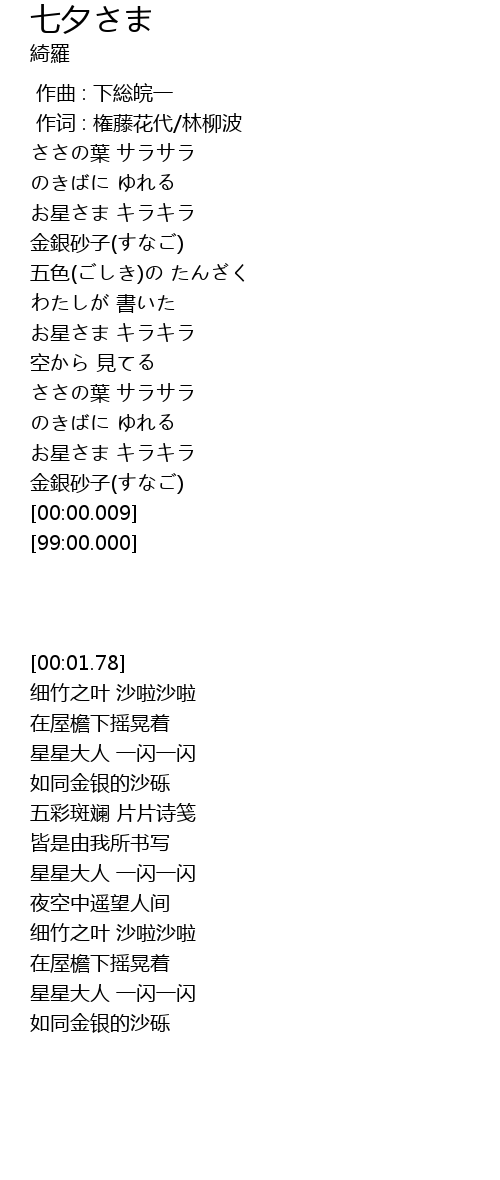 | [00:24.76] | 细竹之叶 沙啦沙啦 |
