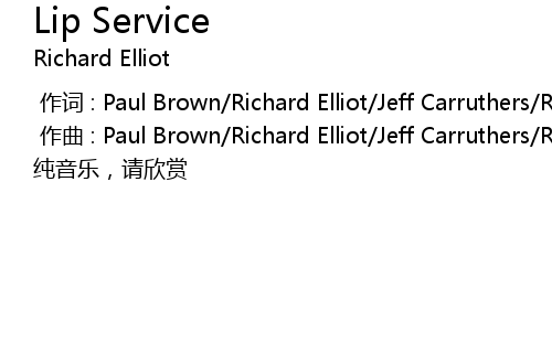 | [00:01.000] | 作曲 : Paul Brown/Richard Elliot/Jeff Carruthers/Roberto Vally |