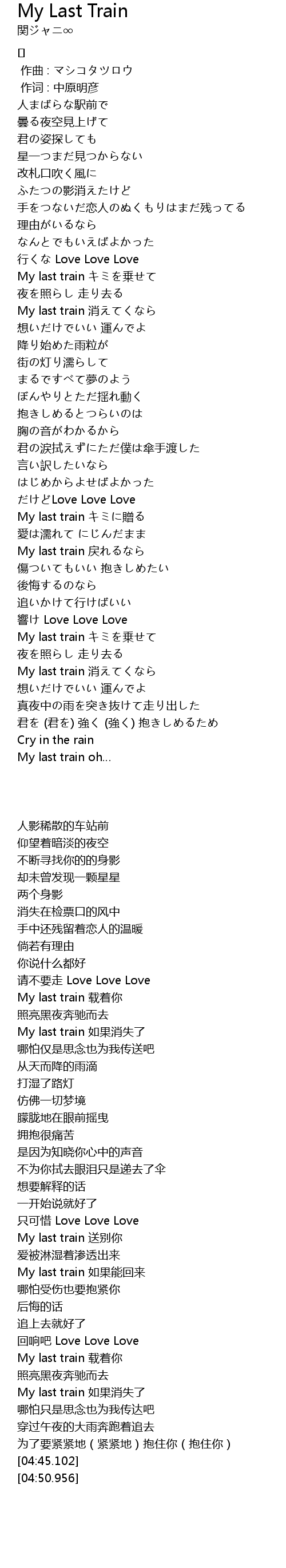 | [04:38.968] | 君を (君を) 強く (強く) 抱きしめるため |