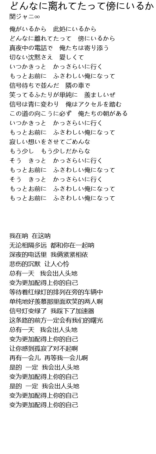 | [00:44.91] | 无论相隔多远 都和你在一起呐 |