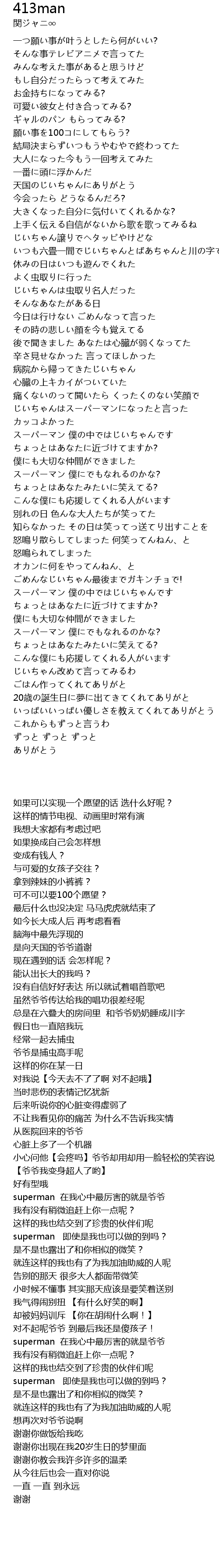 | [02:13.260] | スーパーマン 僕の中ではじいちゃんです |