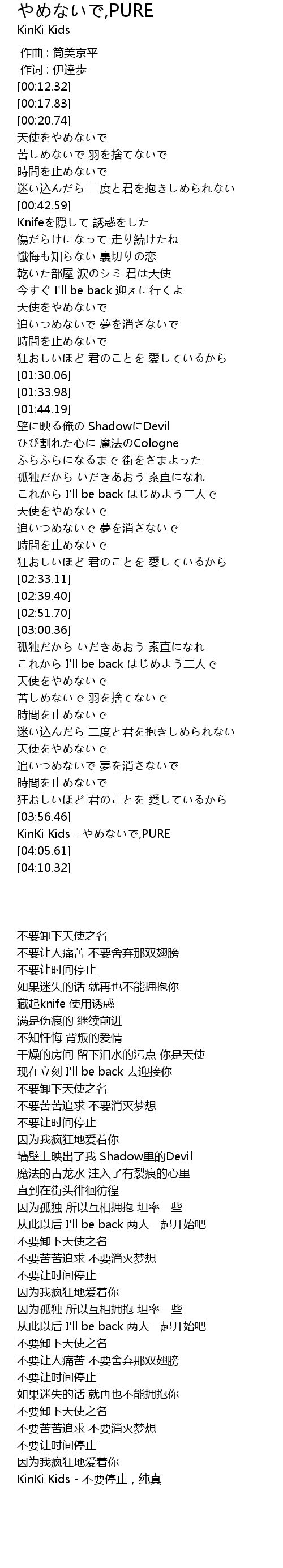 | [03:57.83] | KinKi Kids - やめないで,PURE |