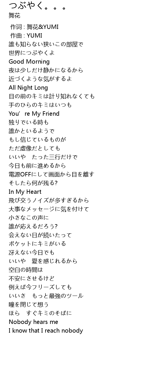 | [00:00.000] | 作词 : 舞花&YUMI |