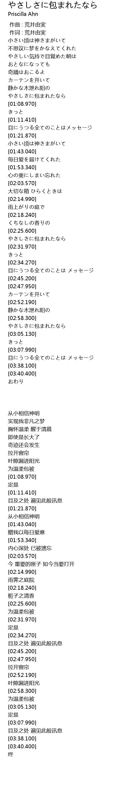 | [03:08.190] | 目にうつる全てのことは メッセージ |