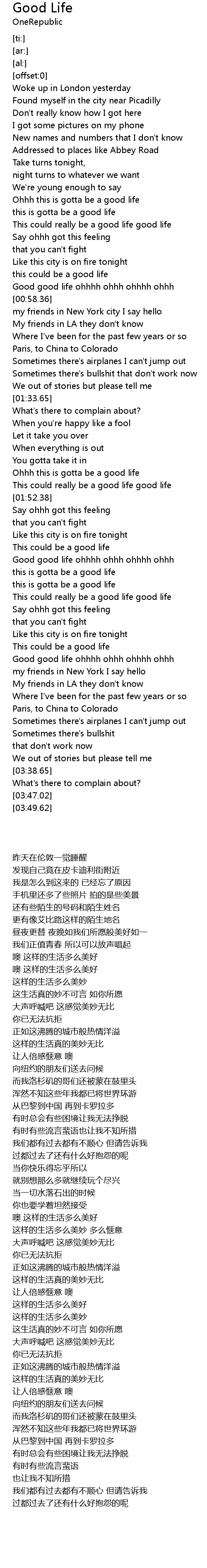 Good good life ohhhh ohhh ohhhh ohhh |