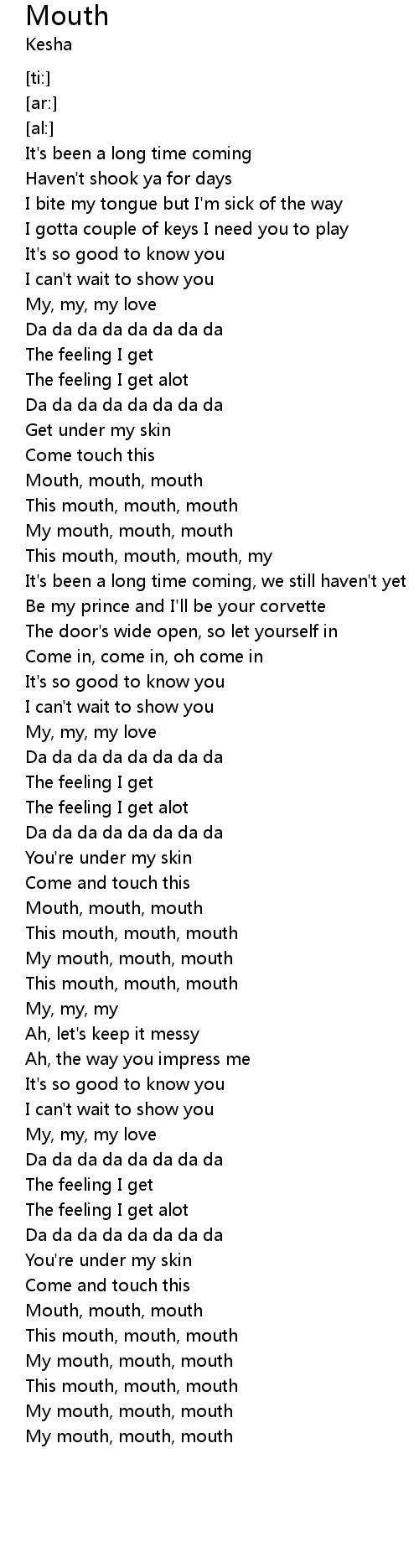 | [03:04.63] | My mouth, mouth, mouth |