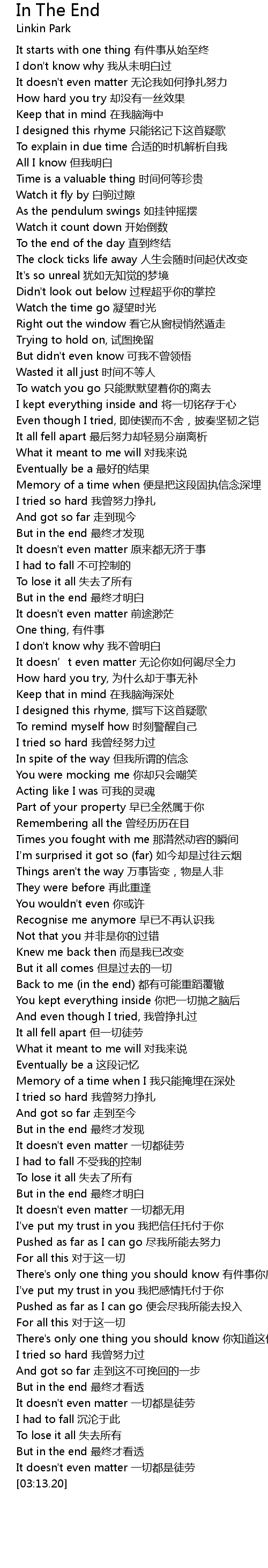 | [03:01.86] | It doesn't even matter 一切都是徒劳 |