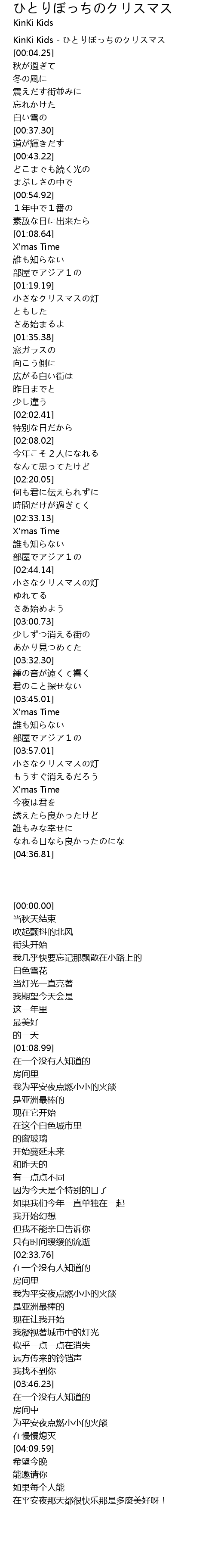 | [00:00.00] | KinKi Kids - ひとりぼっちのクリスマス |