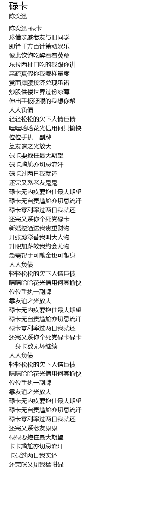 | [00:00.869] | 陈奕迅-碌卡 |