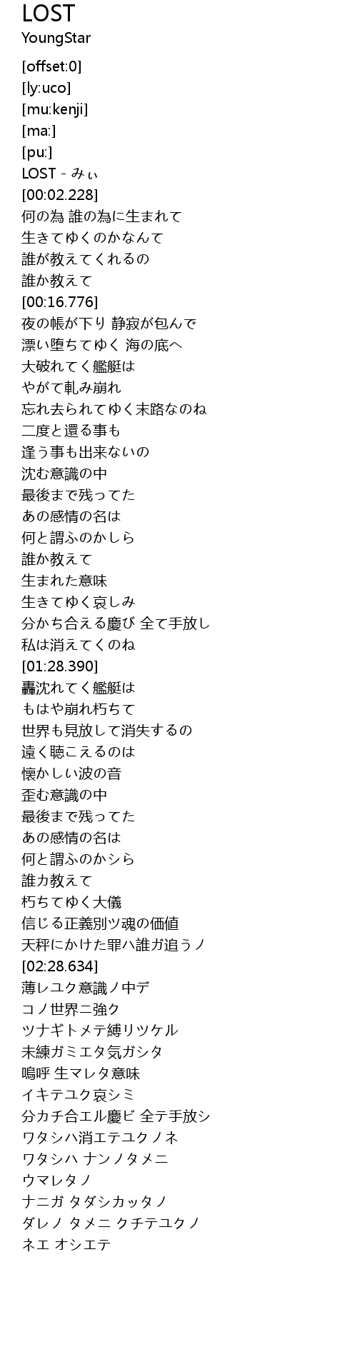 | [00:00.000] | LOST - みぃ |