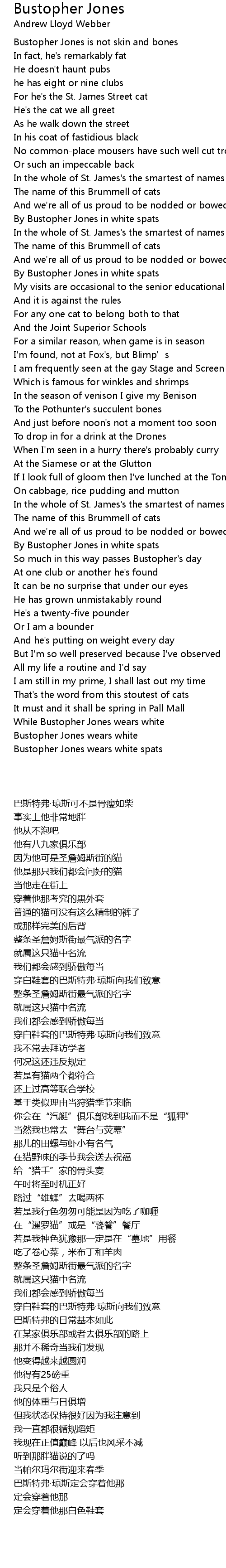 | [00:09.700] | Bustopher Jones is not skin and bones |
