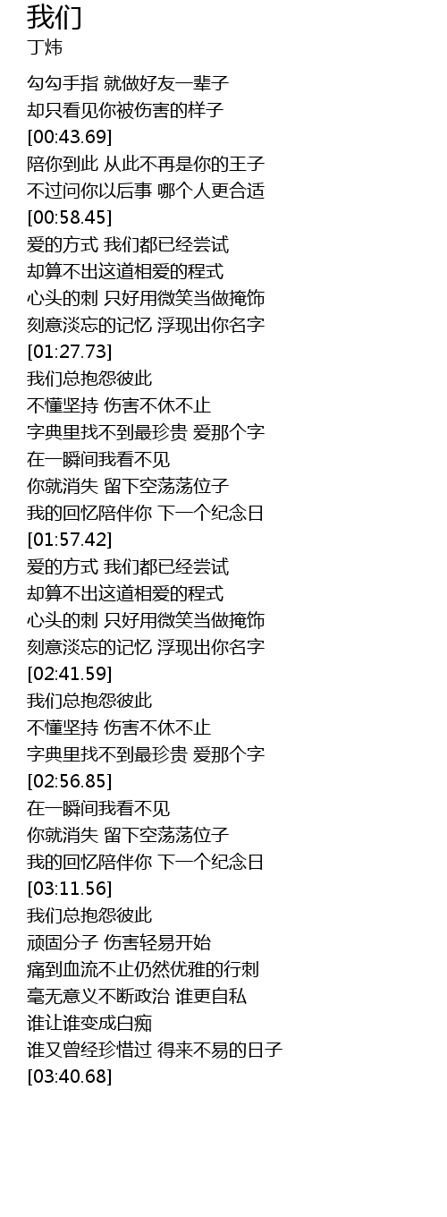 | [03:12.82] | wǒ men zǒng bào yuàn bǐ cǐ |