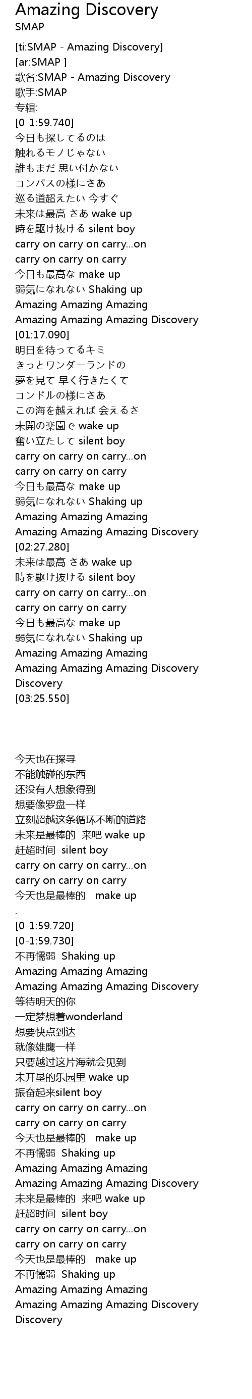 | [0-1:59.700] | 歌名:SMAP - Amazing Discovery |