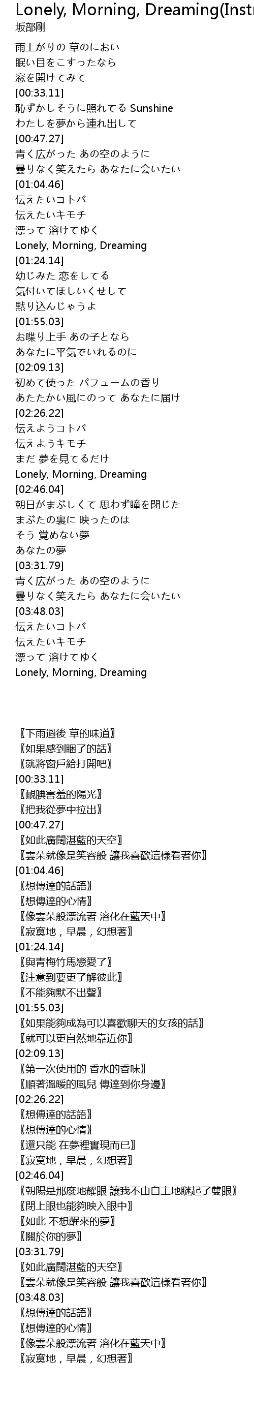 | [03:59.70] | Lonely, Morning, Dreaming |