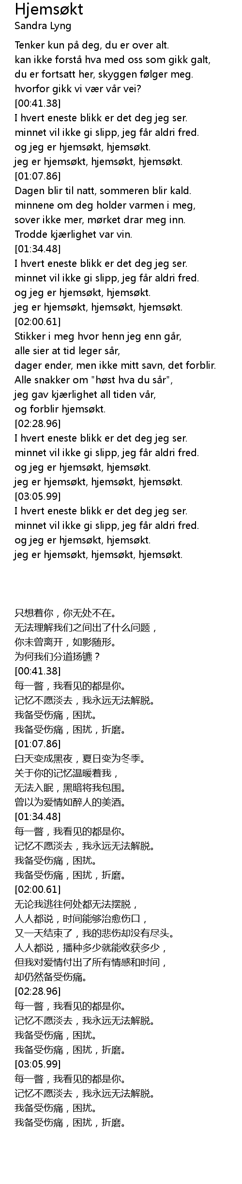 | [02:08.98] | dager ender, men ikke mitt savn, det forblir. |