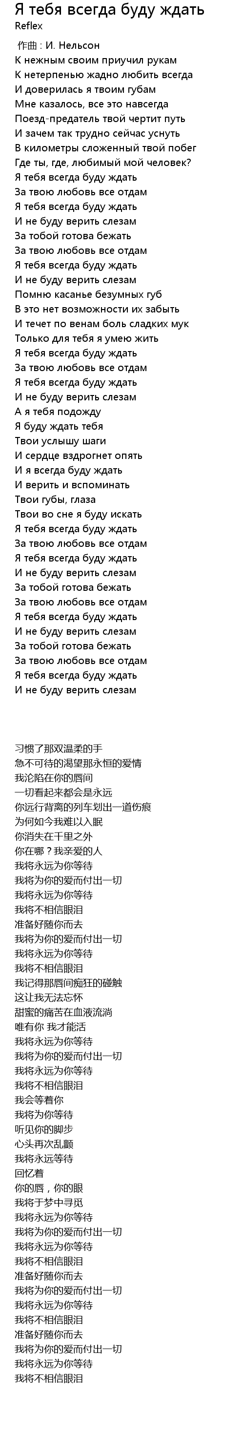 | 歌曲 | Я тебя всегда буду ждать |
