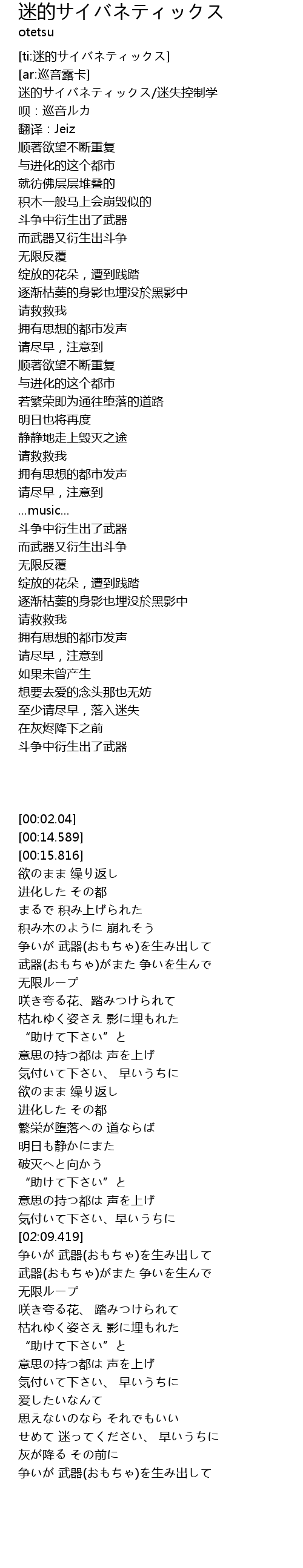 | [00:02.04] | 迷的サイバネティックス/迷失控制学 |