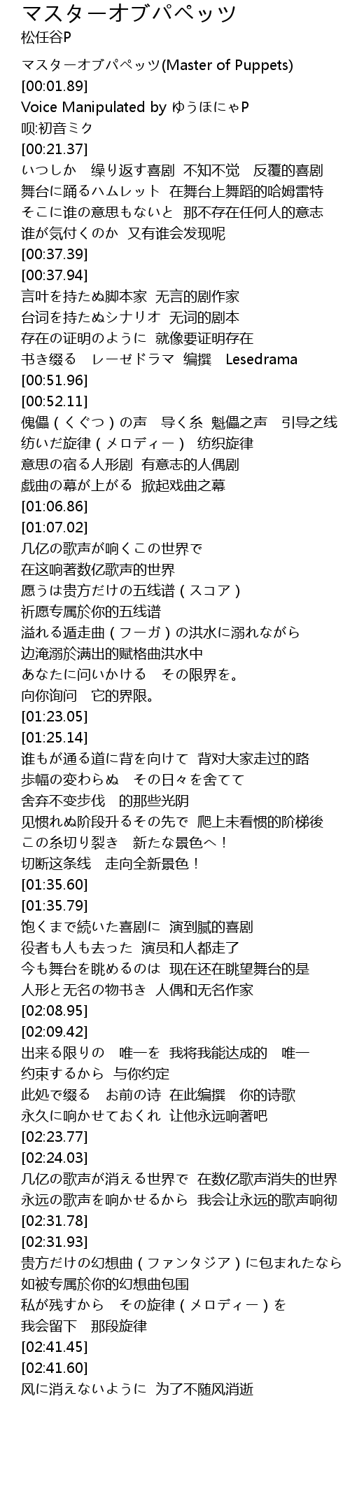 | [00:00.67] | マスターオブパペッツ(Master of Puppets) |