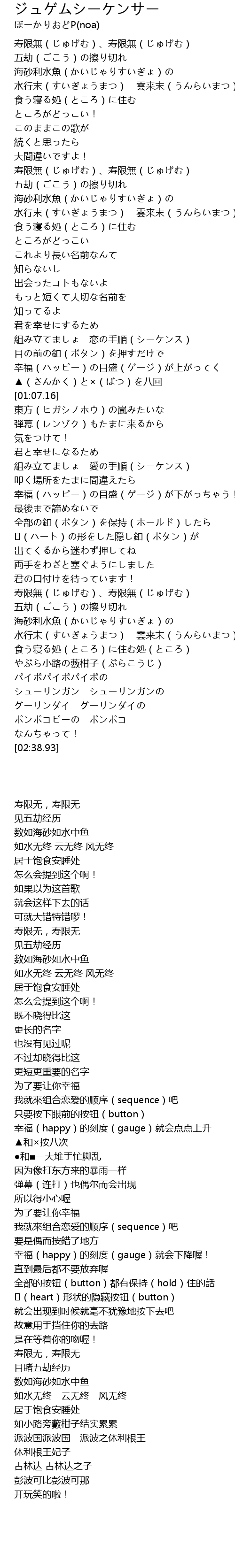 | [00:05.33] | 寿限無(じゅげむ)、寿限無(じゅげむ) |
