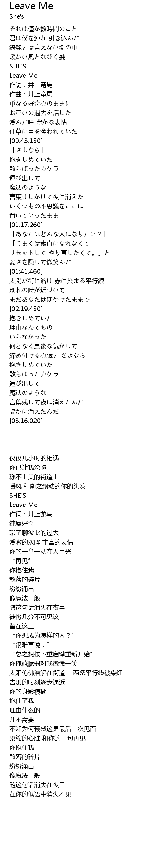 | [00:24.580] | 作词:井上龙马 |
