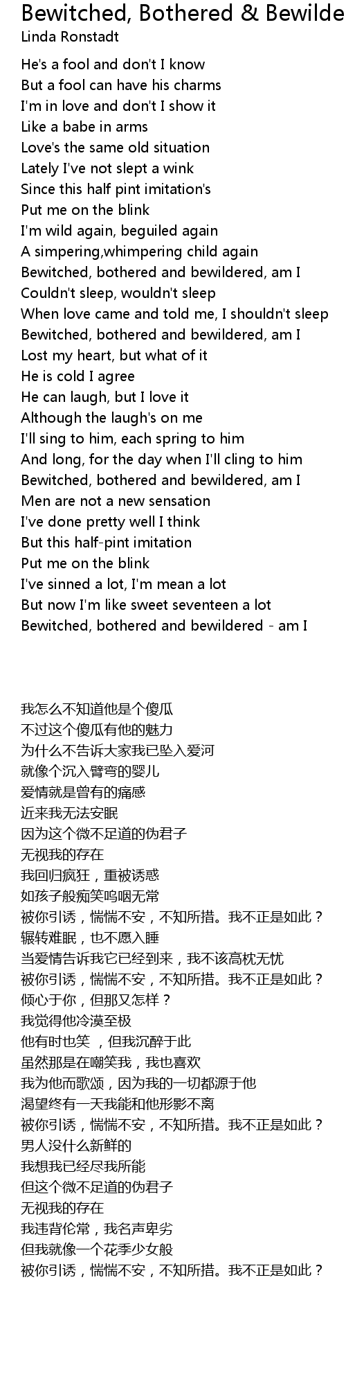 Bewitched, bothered and bewildered, am I |