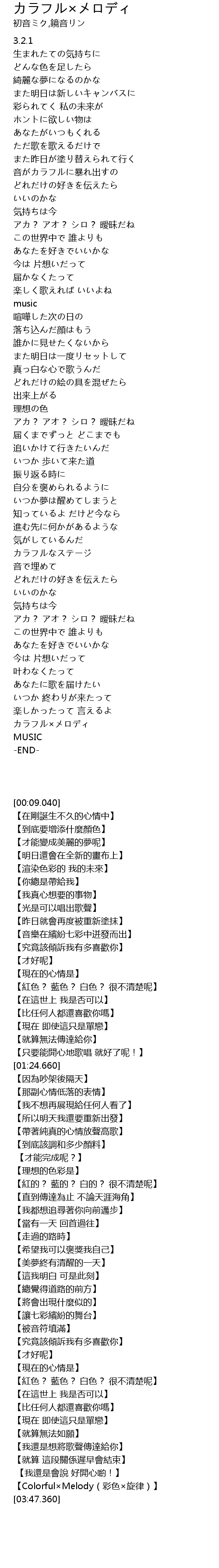 | [03:45.270] | 【Colorful×Melody(彩色×旋律)】 |