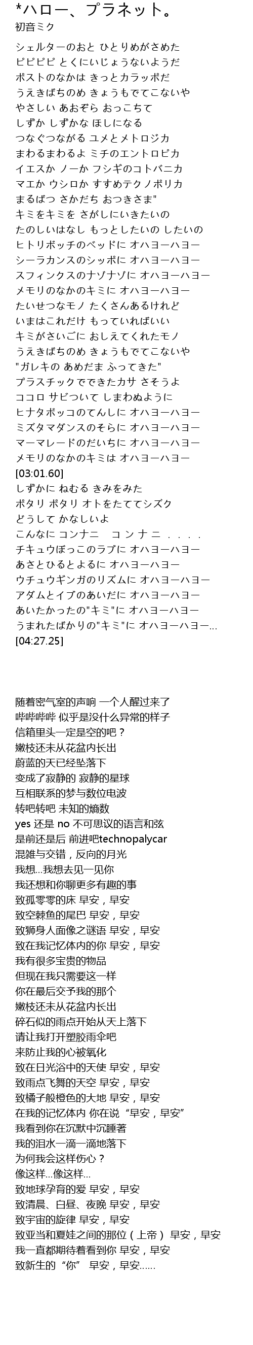 | [03:44.85] | チキュウぼっこのラブに オハヨーハヨー |