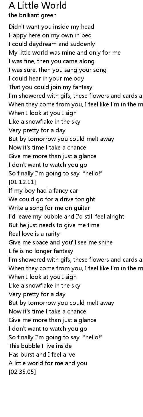 | [00:12.75] | My little world was mine and only for me |