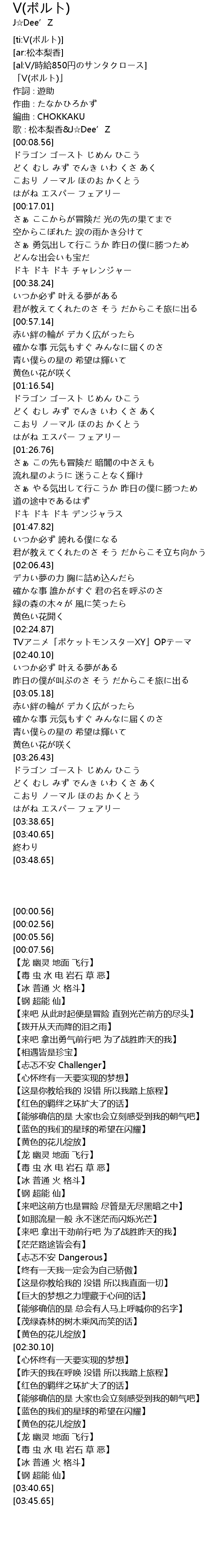 | [02:30.10] | TVアニメ「ポケットモンスターXY」OPテーマ |