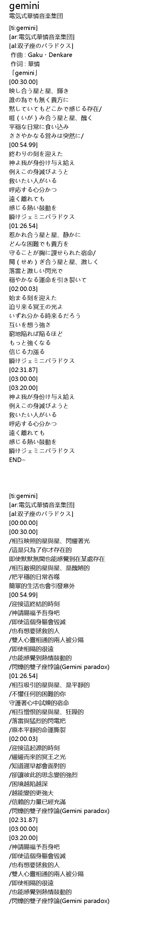 | [03:42.34] | /閃爍的雙子座悖論(Gemini paradox) |