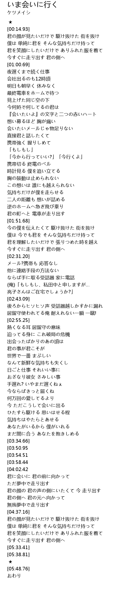 | [01:36.01] | 携帯切る 終電のベル |
