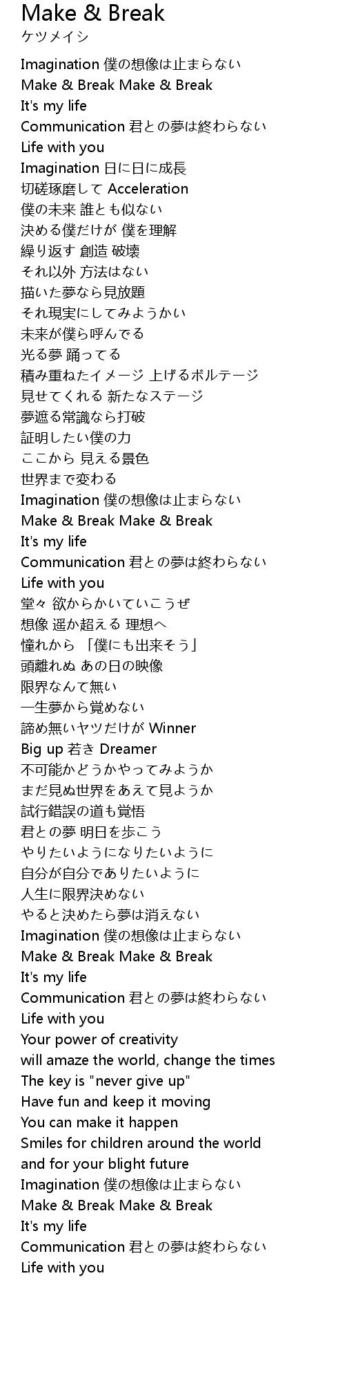 | 歌曲 | Make & Break |