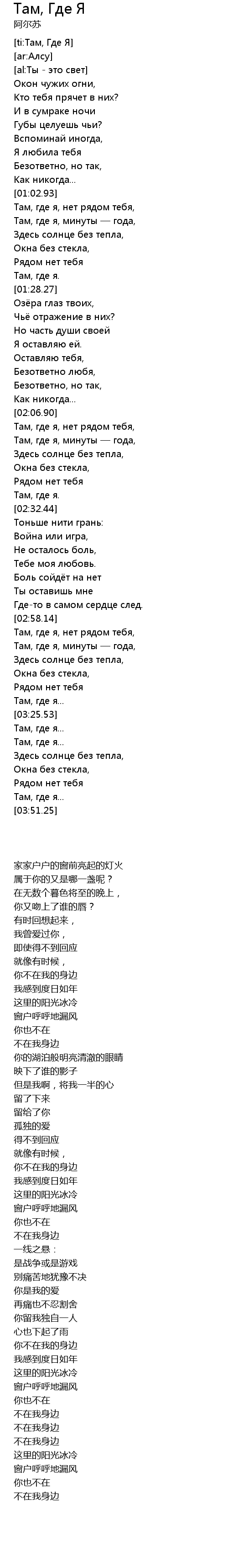 | [02:58.24] | Там, где я, нет рядом тебя, |