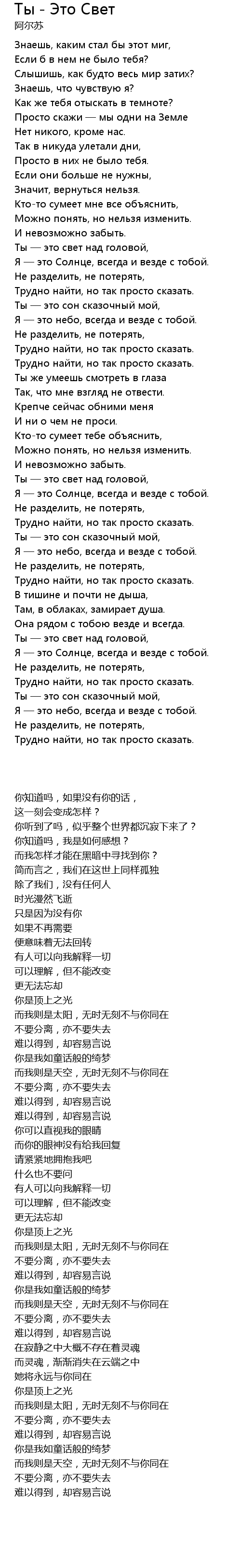 | [03:00.00] | Я — это Солнце, всегда и везде с тобой. |