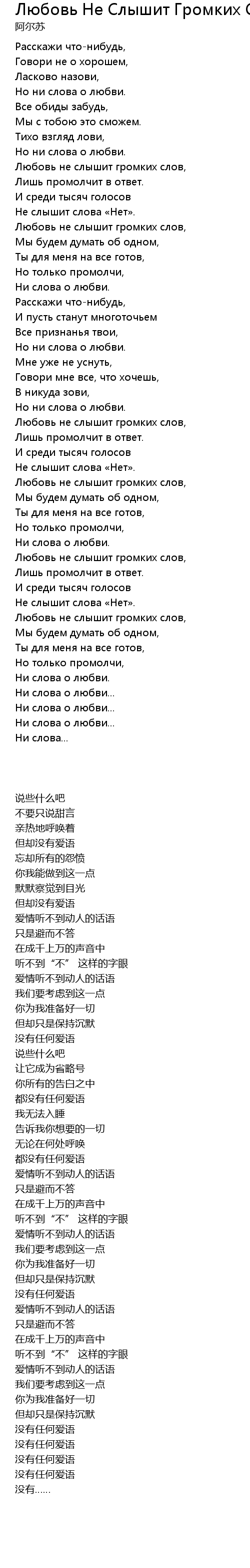 | 歌曲 | Любовь Не Слышит Громких Слов |