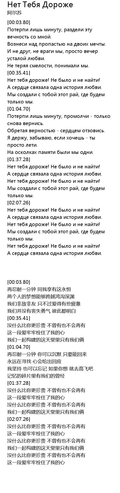 | [01:37.54] | Нет тебя дороже! Не было и не найти! |