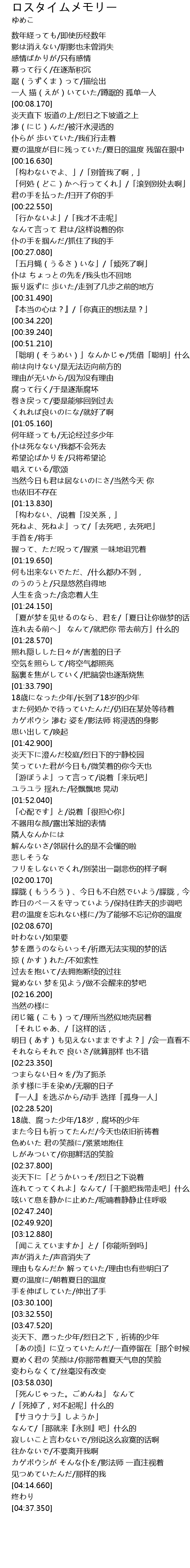| [01:15.860] | 死ねよ、死ねよ」って/「去死吧,去死吧」 |