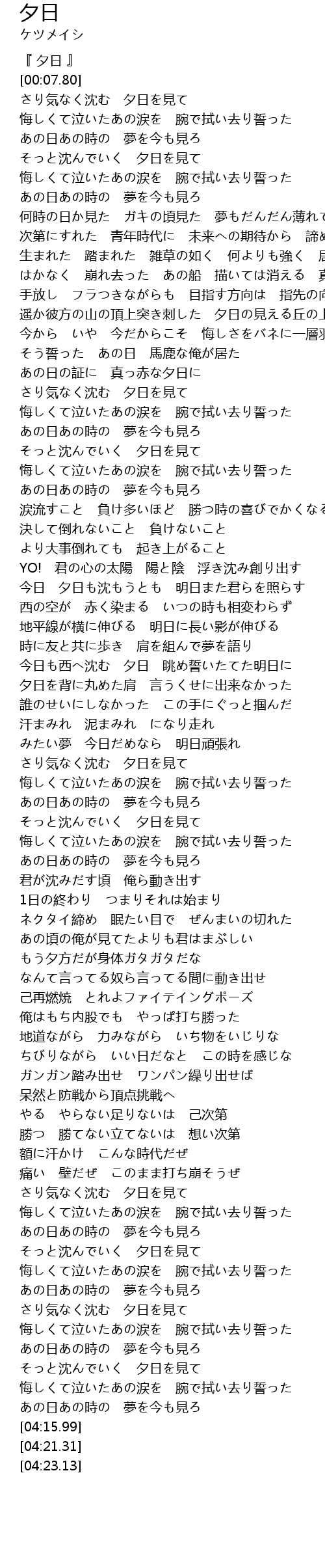 | [01:22.74] | あの日の証に 真っ赤な夕日に |