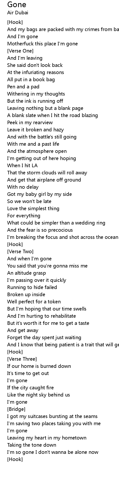 | I'm gone | |